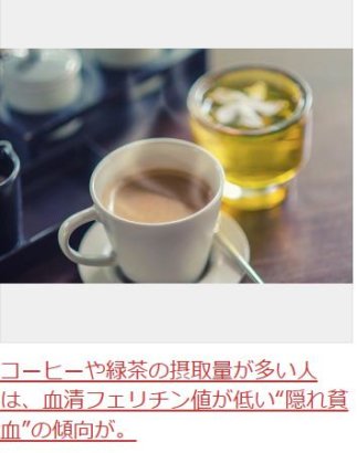 特に、閉経後の女性の間で、コーヒーや緑茶の過剰な摂取が血清フェリチン値の低下と関連していることが指摘されています。