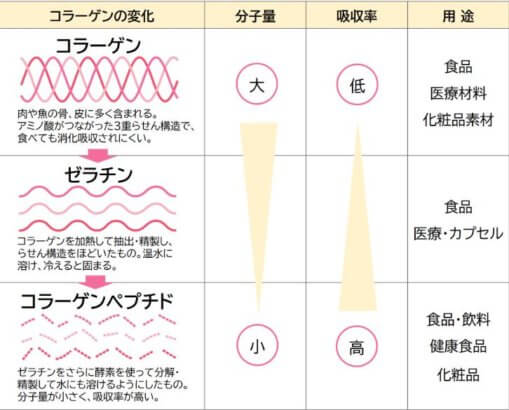 コラーゲンには「生のコラーゲン」「ゼラチン」「コラーゲンペプチド」の3種類があります。
